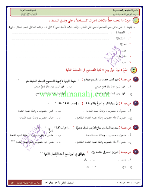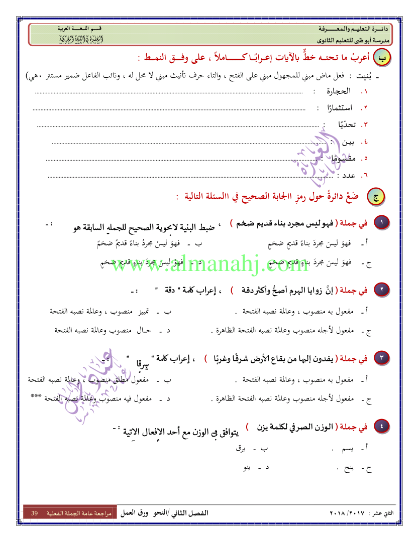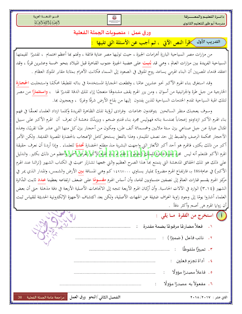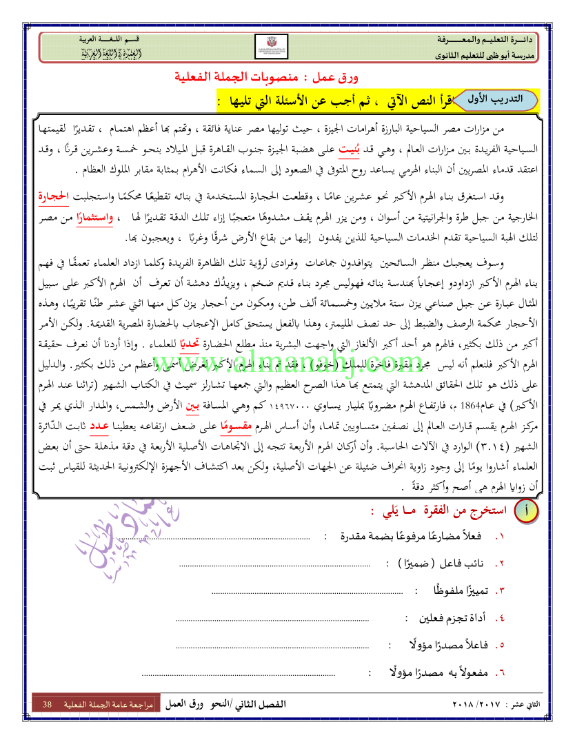 معلومات الملف: الصف الثاني عشر, الفصل الثاني, لغة عربية, 2017-2018, النحو منصوبات الجملة الفعلية | |||
