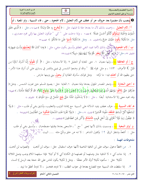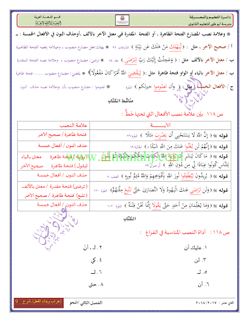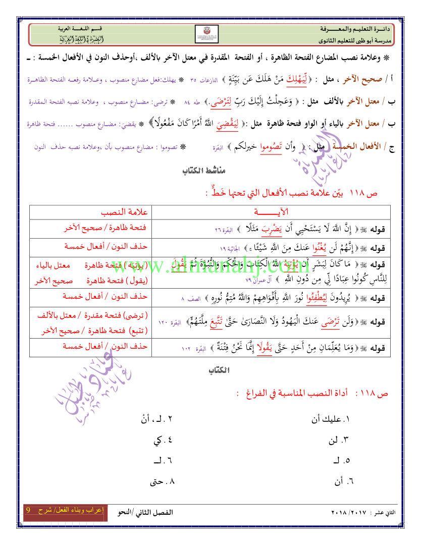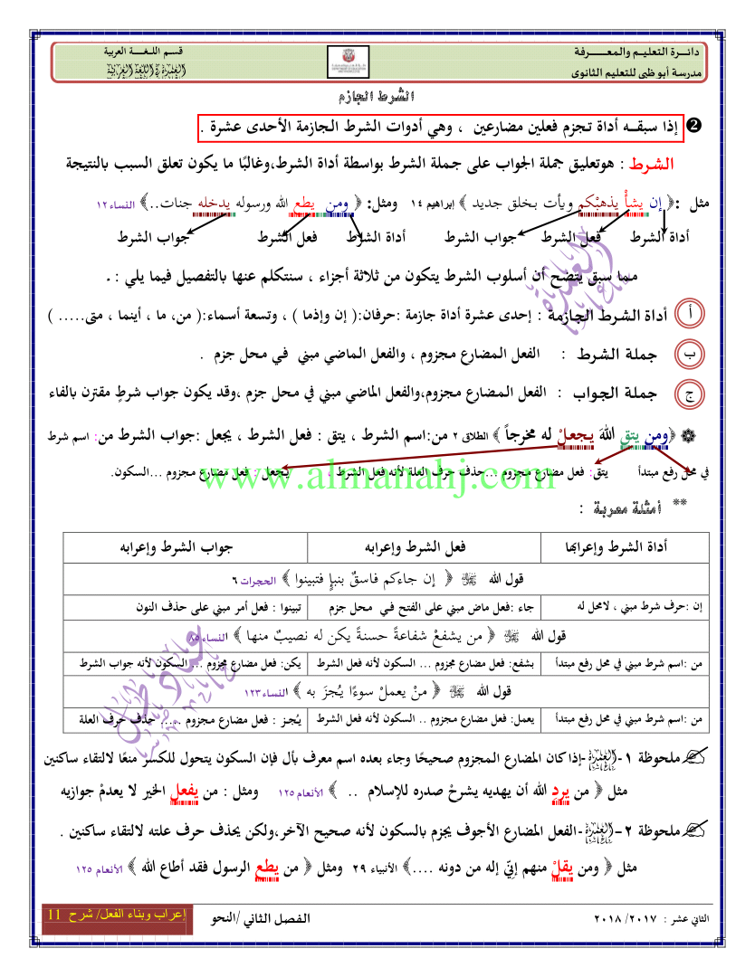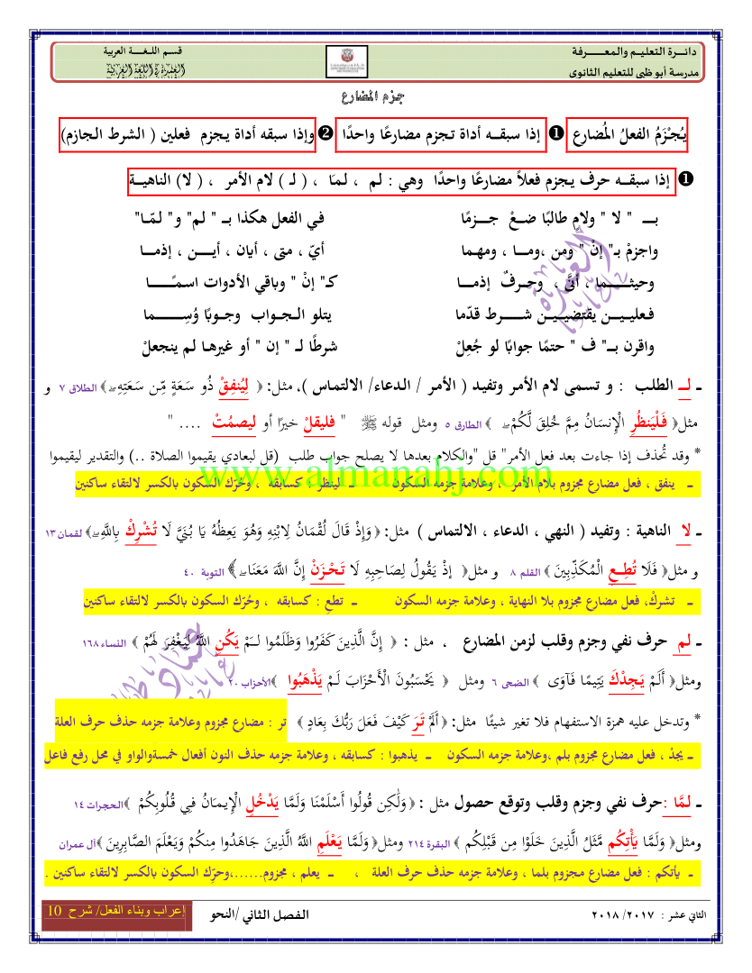 معلومات الملف: الصف الثاني عشر, الفصل الثاني, لغة عربية, 2017-2018, الجلة الفعلية الفعل اعرابه وبناءه | |||