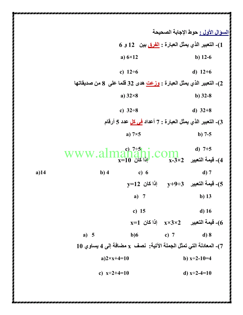 معلومات الملف: الصف الثالث, الفصل الثاني, رياضيات, 2017-2018, مذكرة مراجعة وتقوية في مادة الرياضيات | |||