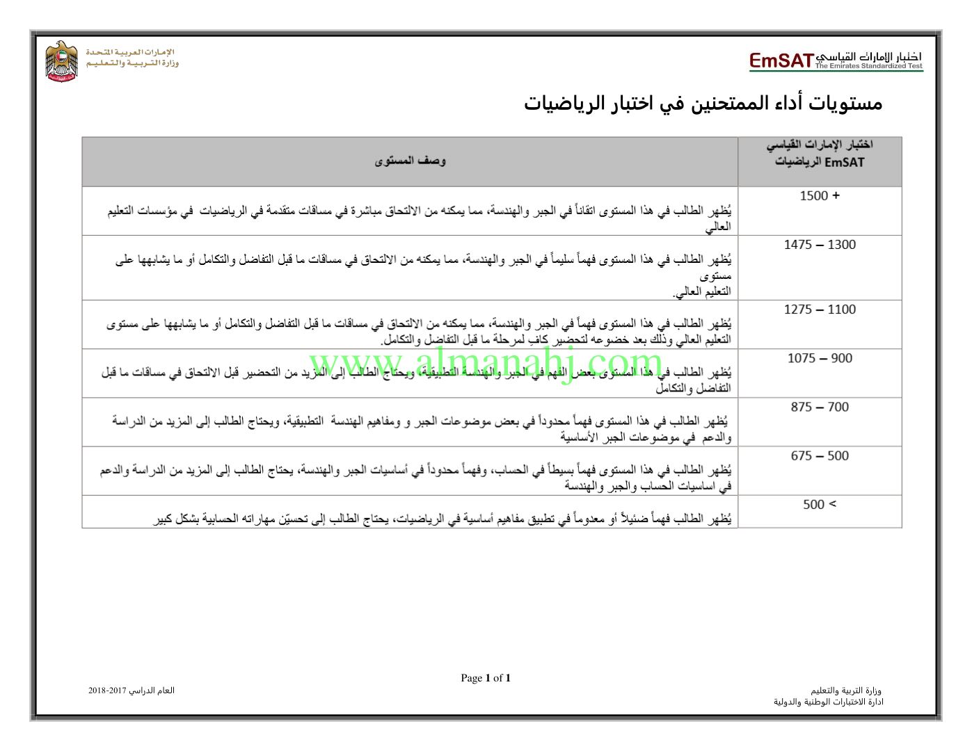 معلومات الملف: الصف الثاني عشر المتقدم, الفصل الثاني, رياضيات, 2017-2018, مستويات الاداء | |||