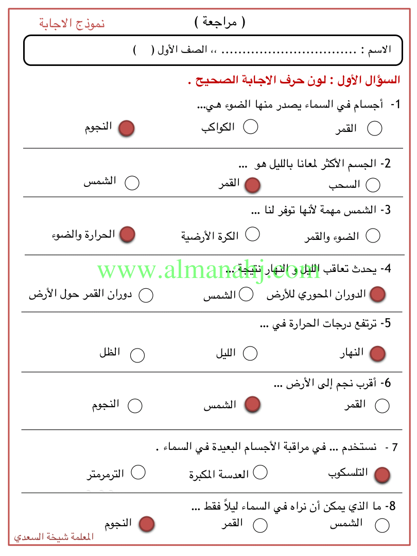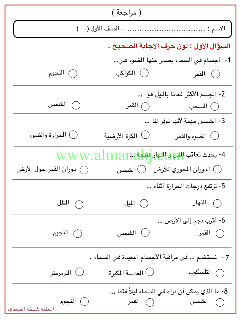 معلومات الملف: الصف الأول, الفصل الثاني, علوم, 2017-2018, الوحدةالسادسة السماء ملف ثاني | |||