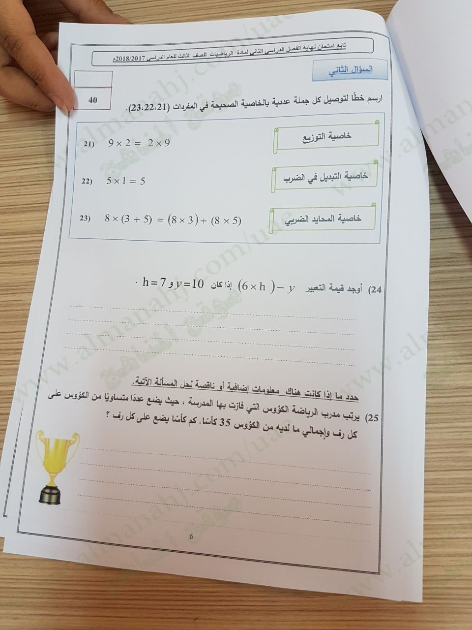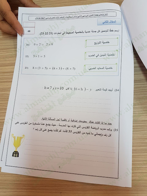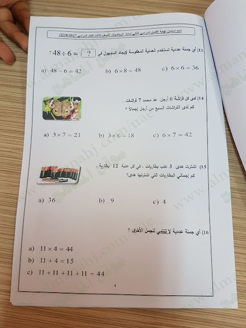 معلومات الملف: الصف الثالث, الفصل الثاني, رياضيات, 2017-2018, أسئلة امتحان نهاية الفصل | |||