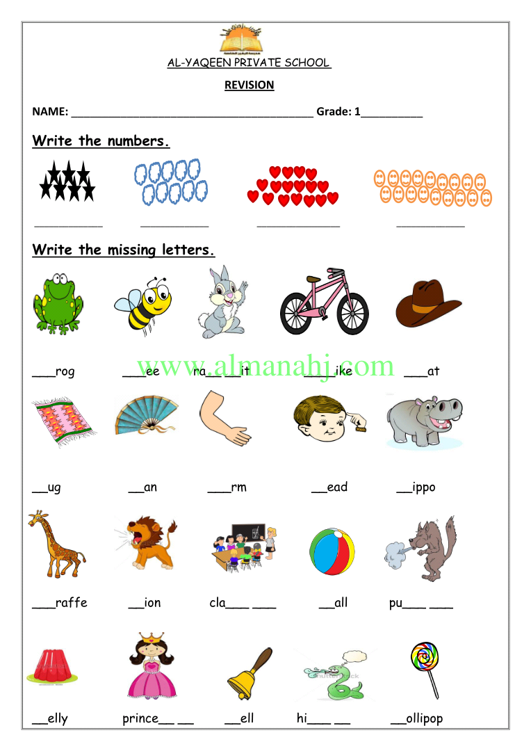 معلومات الملف: الصف الأول, الفصل الثاني, لغة انكليزية, 2017-2018, AL-YAQEEN PRIVATE SCHOOL REVISION | |||