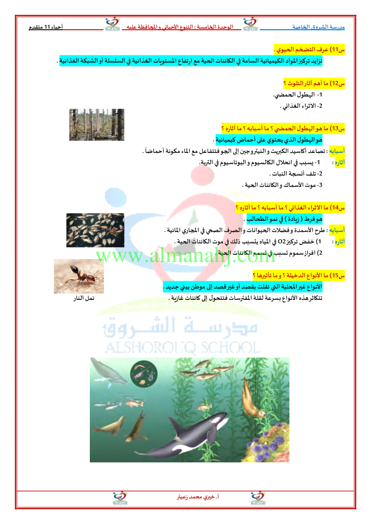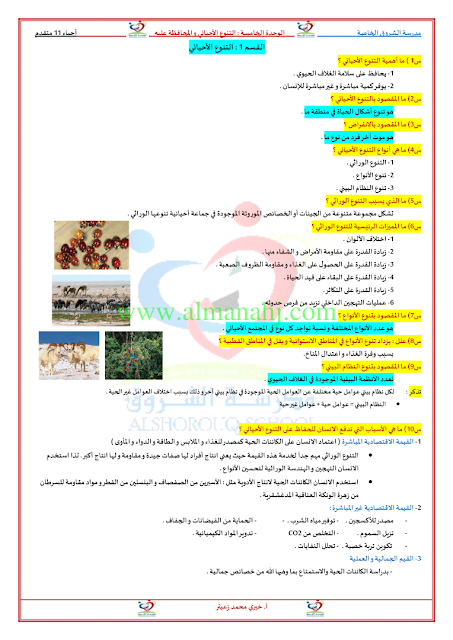 لرحدة 5 التنوع الاحيائي والمحافظة عليه | |||