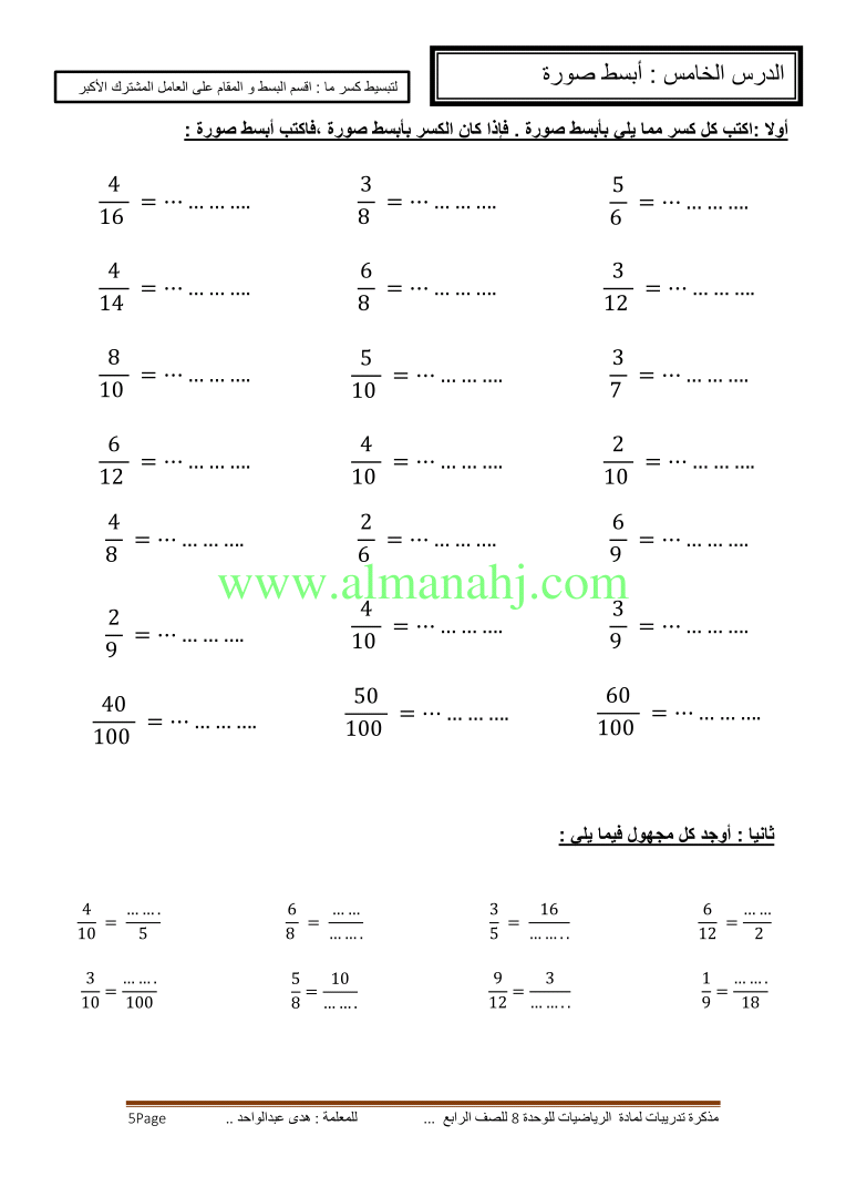 | اضغط هنا لتحميل وعرض ( وحدة8 الدرس الاول العوامل والمضاعفات ) | |||