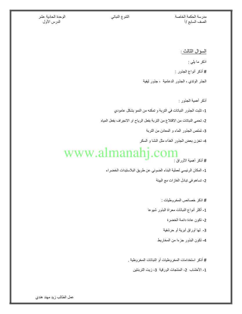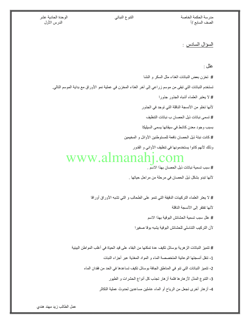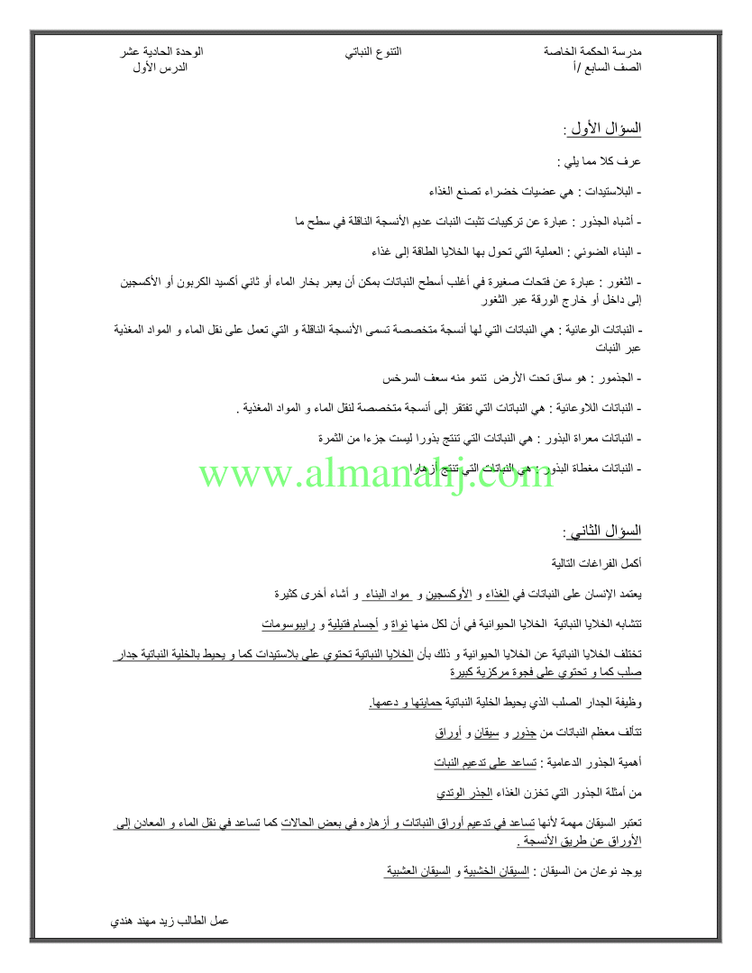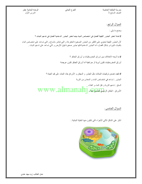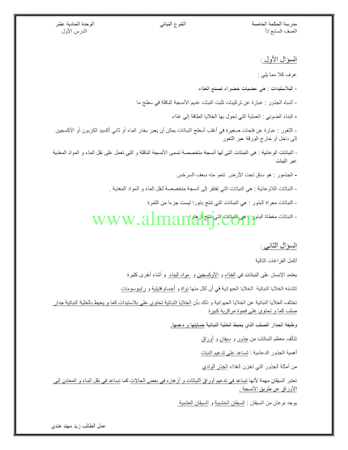 معلومات الملف: الصف السابع, الفصل الثاني, علوم, 2017-2018, الوحدة11 التنوع النباتي | |||