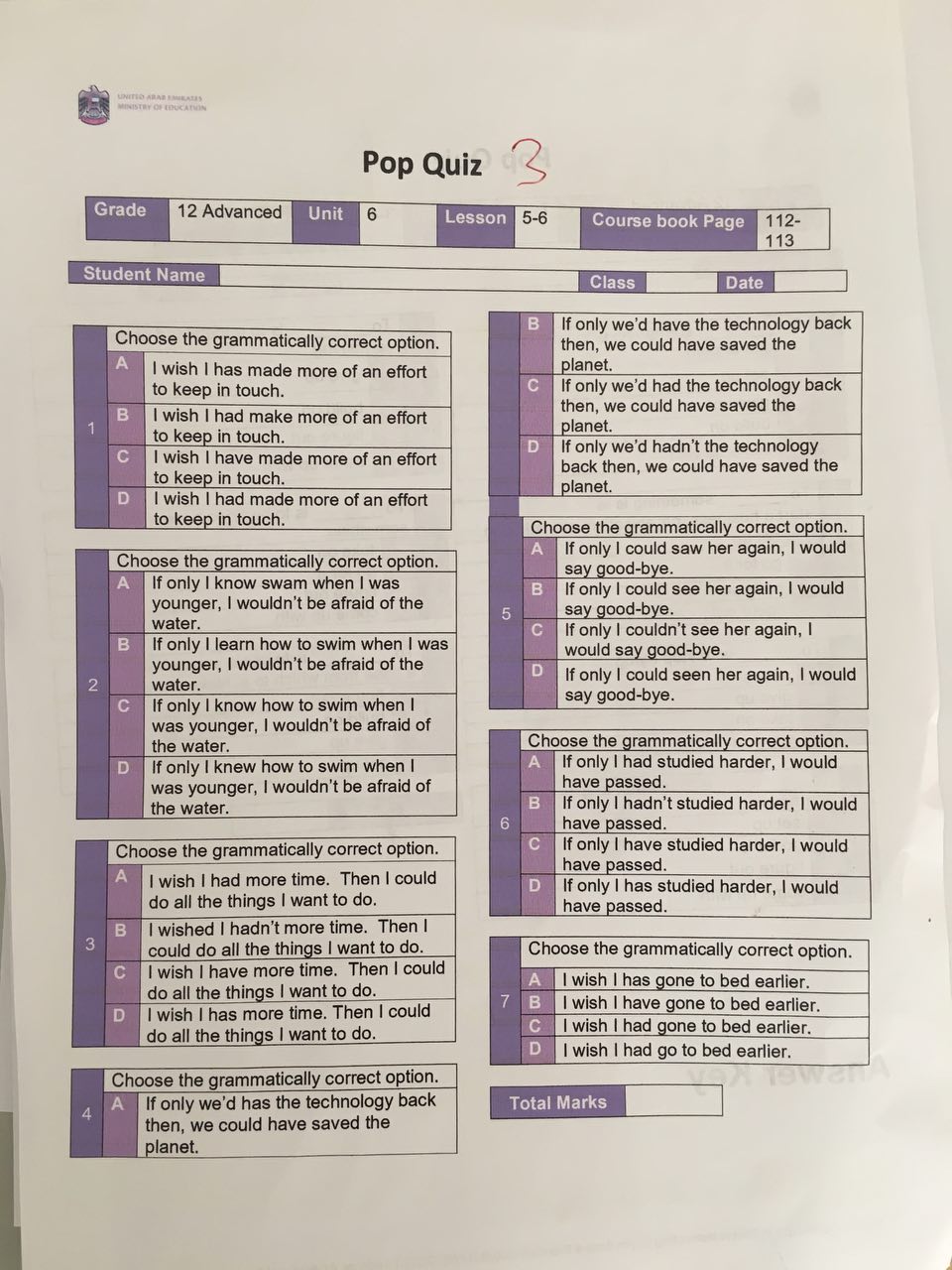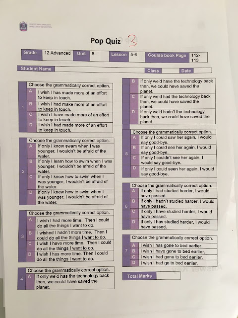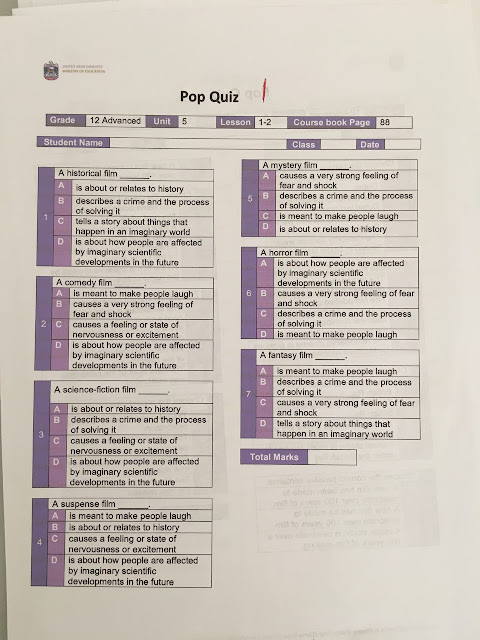 معلومات الملف: الصف الثاني عشر, الفصل الثاني, لغة انكليزية, 2017-2018, Pop Quiz | ||