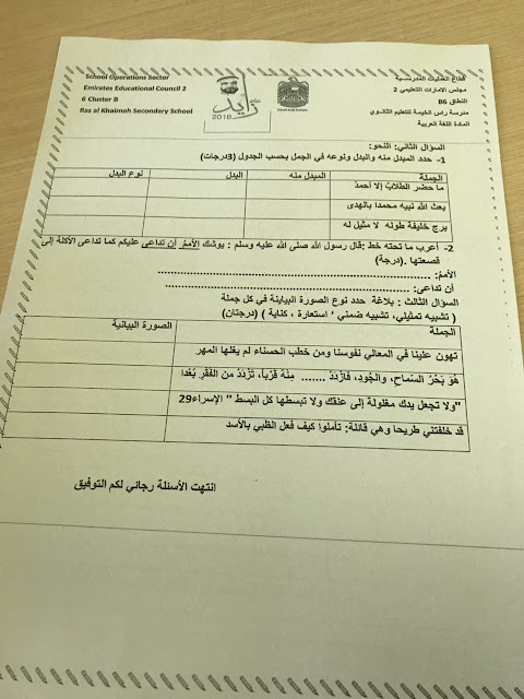 معلومات الملف: الصف الحادي عشر, الفصل الثاني, لغة عربية, 2017-2018، اسئلة مدرسة رأس الخيمة | ||