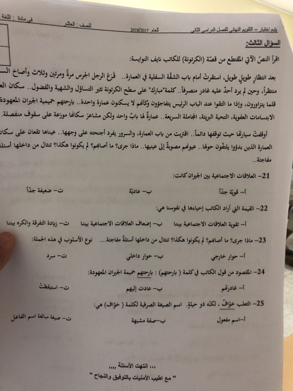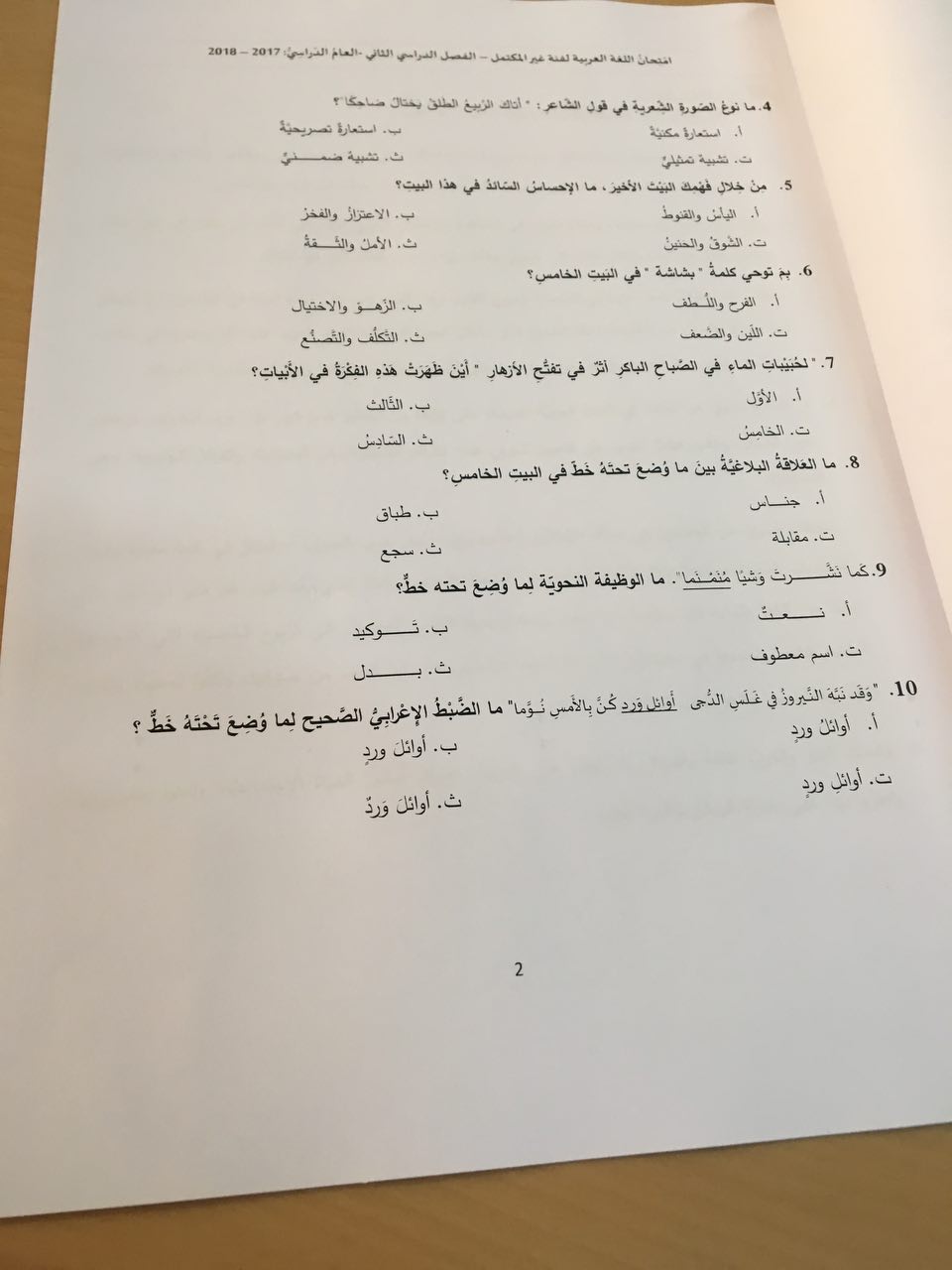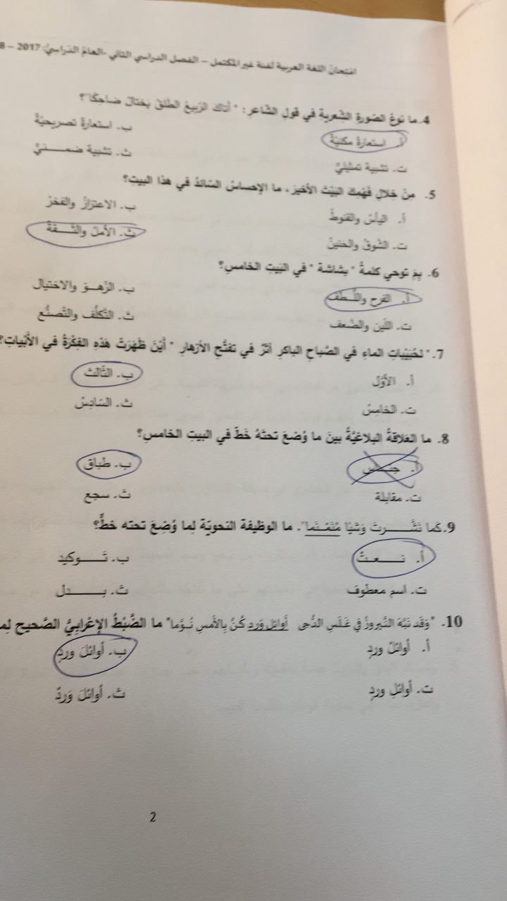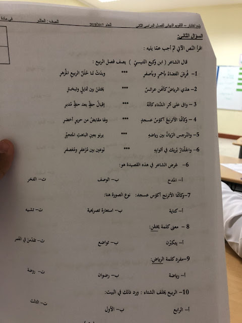 معلومات الملف: الصف العاشر، الفصل الثاني، لغة عربية، 2017-2018، اسئلة الامتحان لفئة غير مكتمل | ||