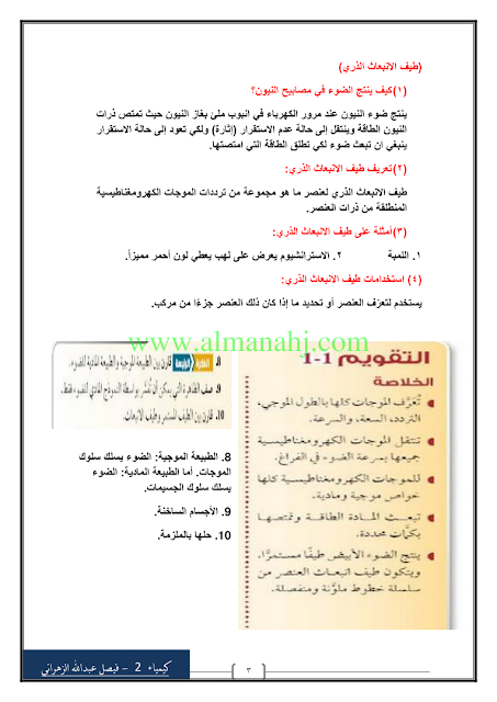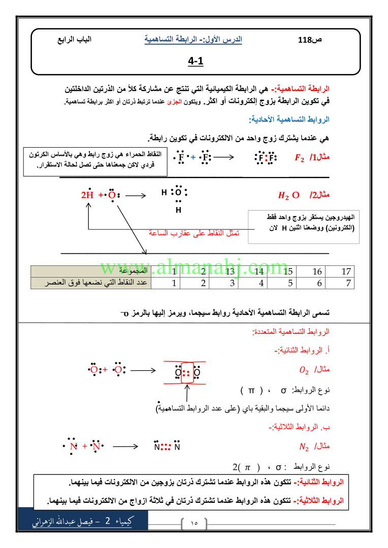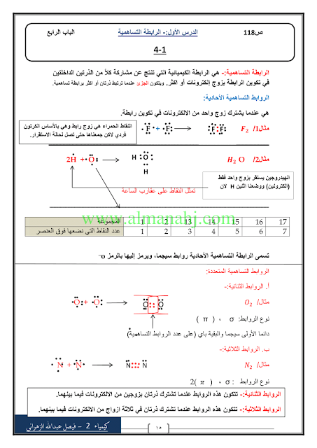 كيمياء تلخيص كيمياء الضوء وطاقة الكم ـ التزيع الالكتروني ـ تدرج خواص العناصر ـ تكون الايون ـ الروابط والمركبات الايونية ـ صيغ المركبات الايونية واسماءها ـ الروابط الفلزية وخواص الفلزات ـ الرابطة التساهمية | |||