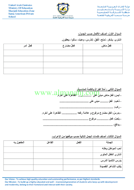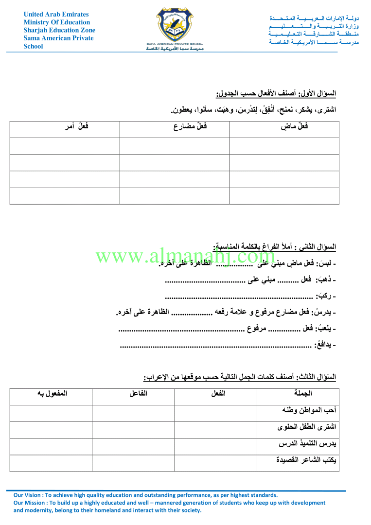 معلومات الملف: الصف السابع, الفصل الثاني, لغة عربية, 2017-2018, اوراق عمل لغة عربية الافعال والكلمات | |||