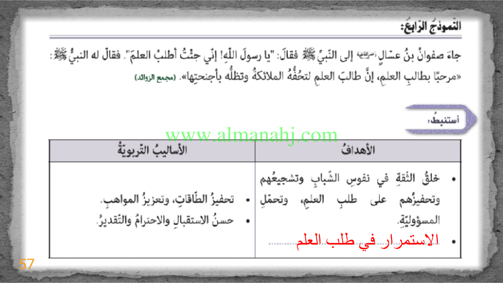 معلومات الملف: الصف السابع, الفصل الثاني, تربية اسلامية, 2017-2018, المنهج النبوي في تربية الجيل | |||