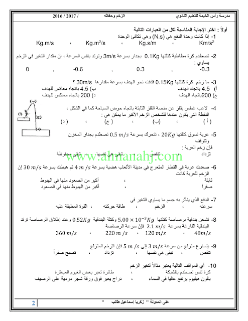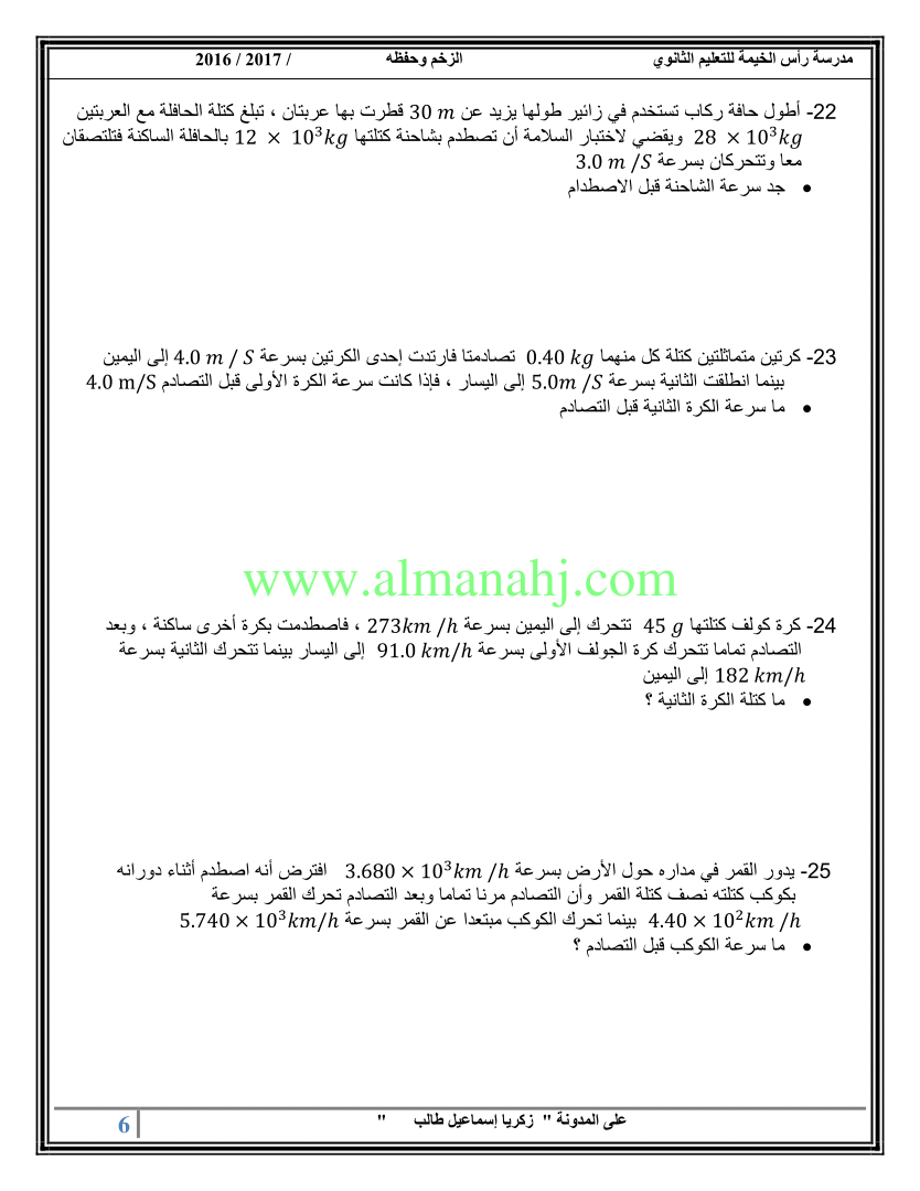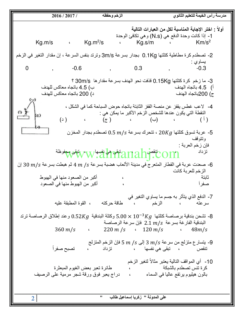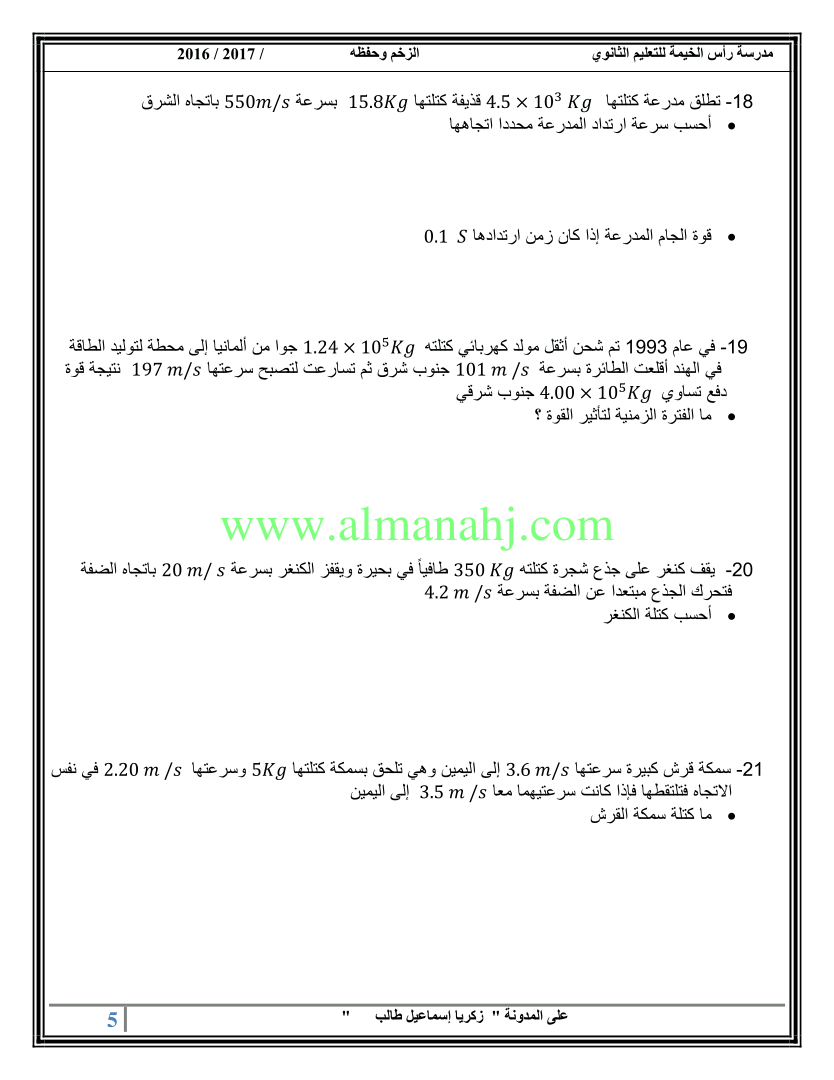 معلومات الملف: الصف الثاني عشر المتقدم, الفصل الاول, فيزياء, 2017-2018, الدفع والزخم | |||