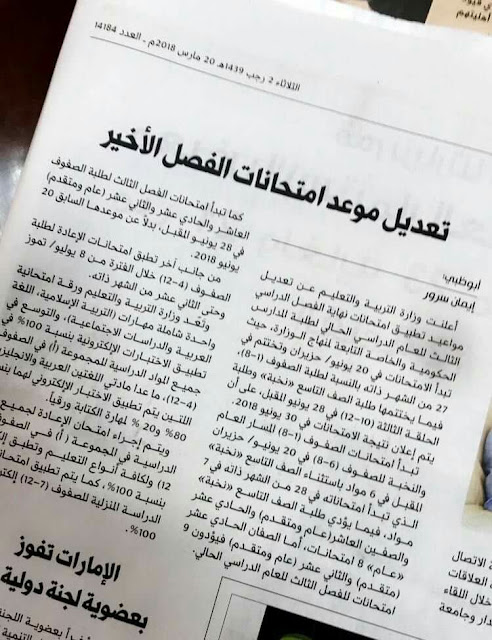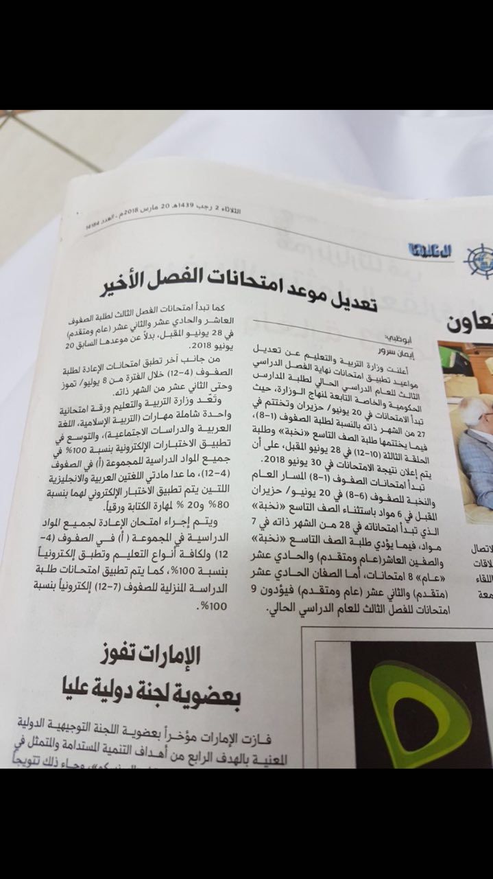 | أنت هنا: موقع المناهج ⇦ المناهج الإماراتية ⇦ أخبار ⇦ الامتحانات ⇦ الفصل الثالث ⇦ الامتحان النهائي |