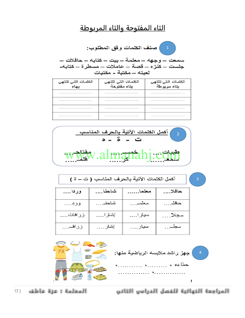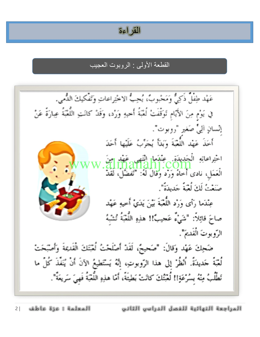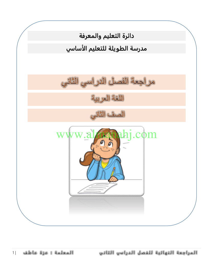 معلومات الملف: الصف الثاني, الفصل الثاني, لغة عربية, 2017-2018, مراجعة نهائية الفصل الثاني | |||