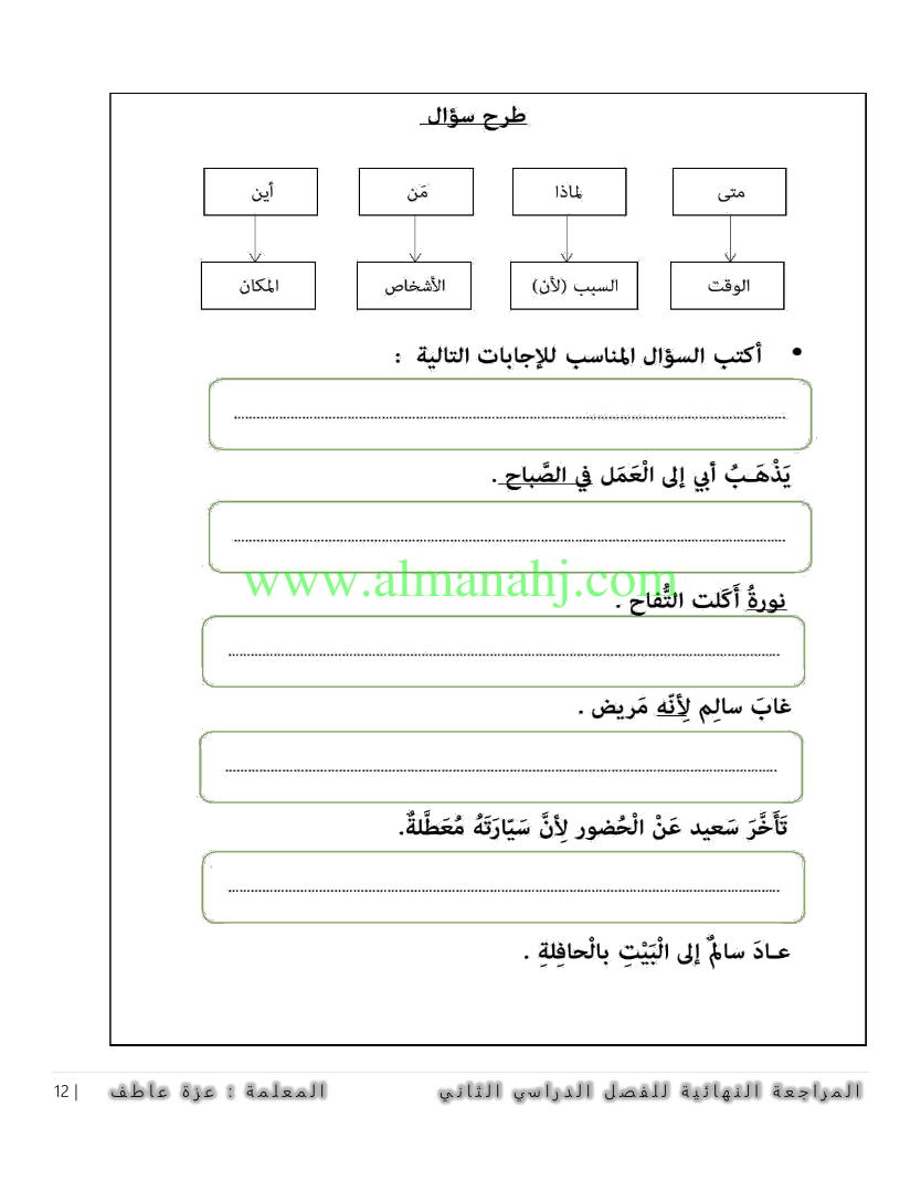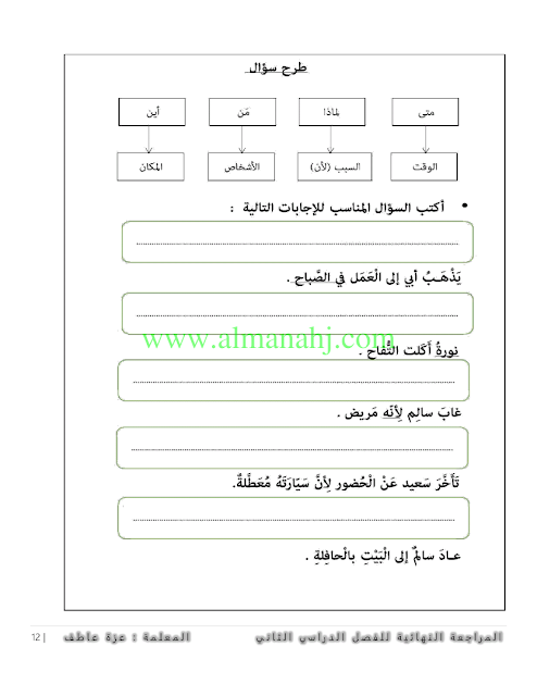 | السابق: ورقة مراجعة أدوات الاستفهام | الملف الحالي: 4157 | التالي: أسئلة الاختبار التكويني الثاني (الموضوعي والمقالي) | |