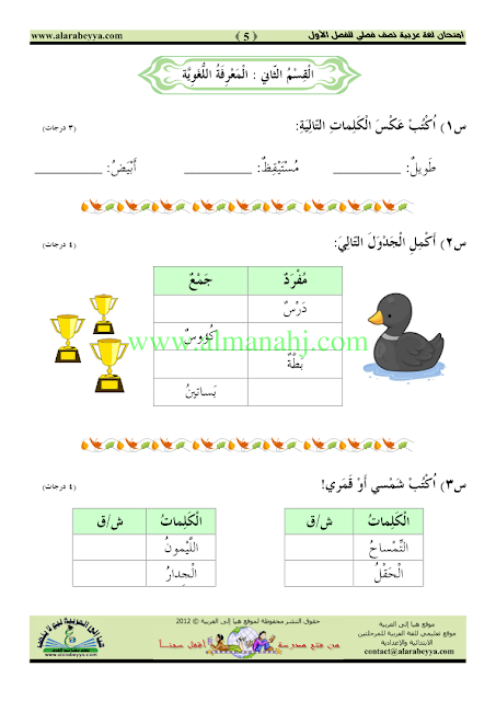 معلومات الملف: الصف الثاني, الفصل الاول, لغة عربية, 2017-2018, امتحان لغة عربية نصف فصلي الفصل الاول | |||