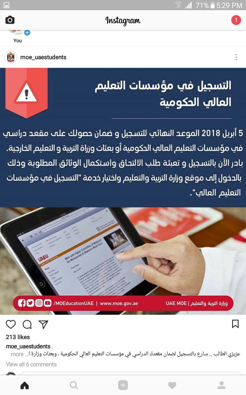 تفاصيل الخبر: التسجيل في مؤسسات التعليم العالي الحكومية تنتهي في 5 ابريل2018 | ||