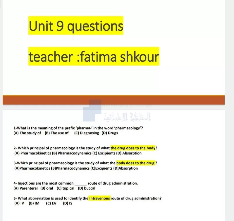 أسئلة تدريبية حول الوحدتين التاسعة والعاشرة بدون حل المسار العام - إعداد: Fatima Shkour | ||