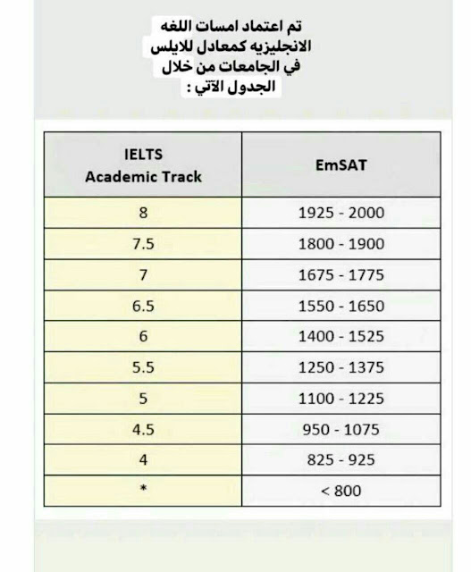 اعتماد امسات اللغة الانجليزية كمعادل للايلتس في الجامعات