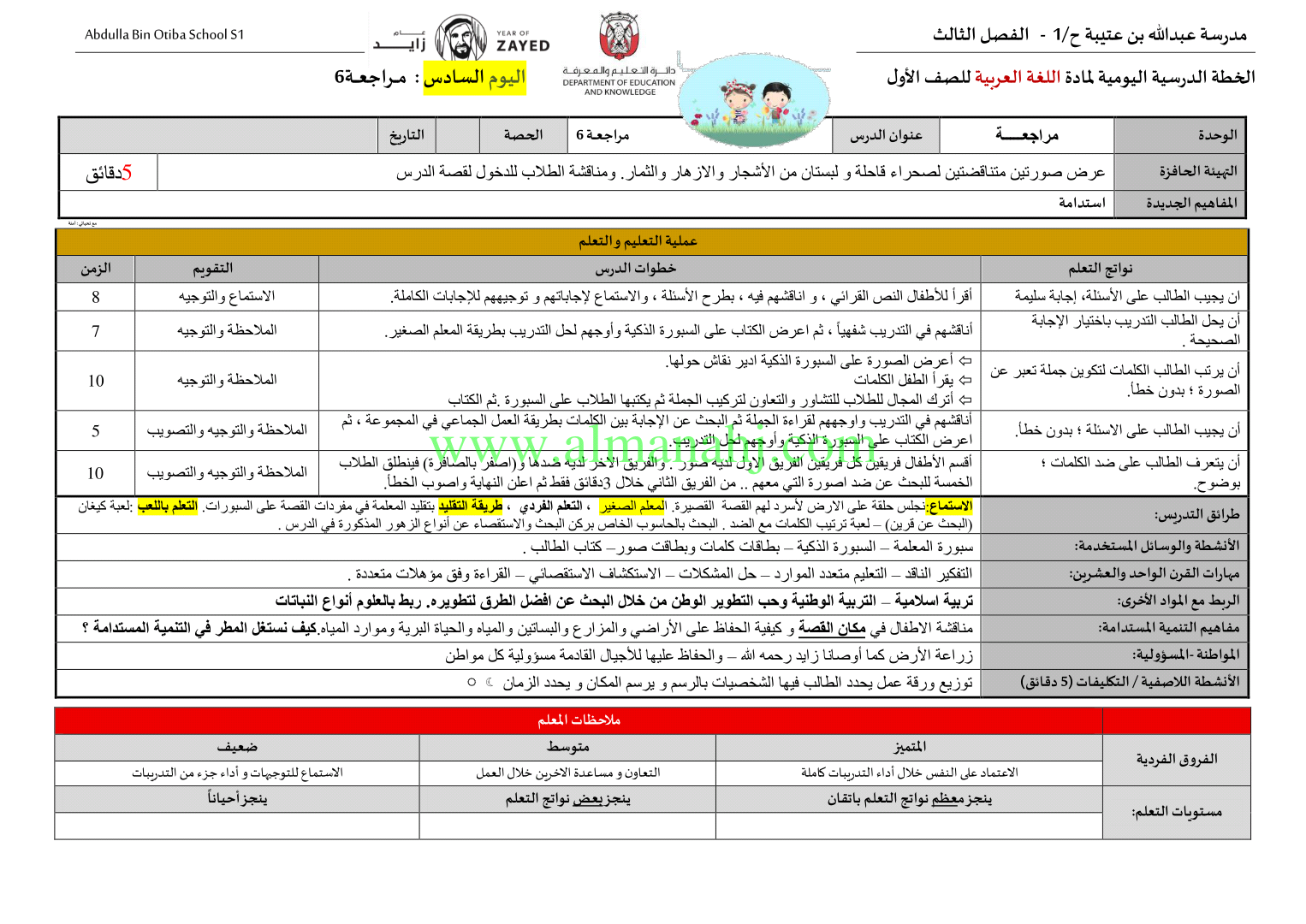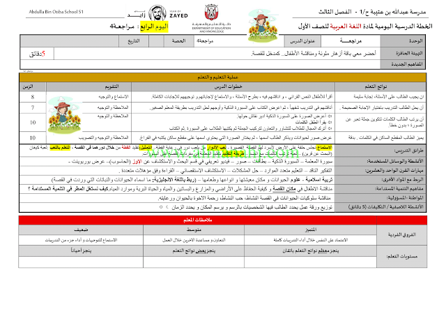 معلومات الملف: الصف الأول، الفصل الثالث، لغة عربية، 2017-2018، الخطة الدرسية اليومية | |||