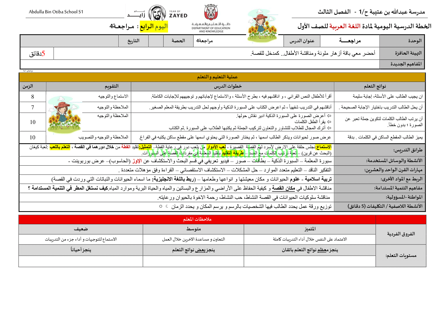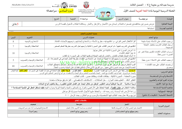، الفصل الثالث، ، ، الخطة الدرسية اليومية | |||