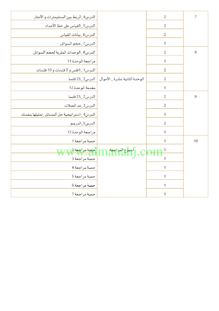 معلومات الملف: الفصل الثالث, رياضيات, 2017-2018, التوزيع الزمني للخطة الفصلية | |||