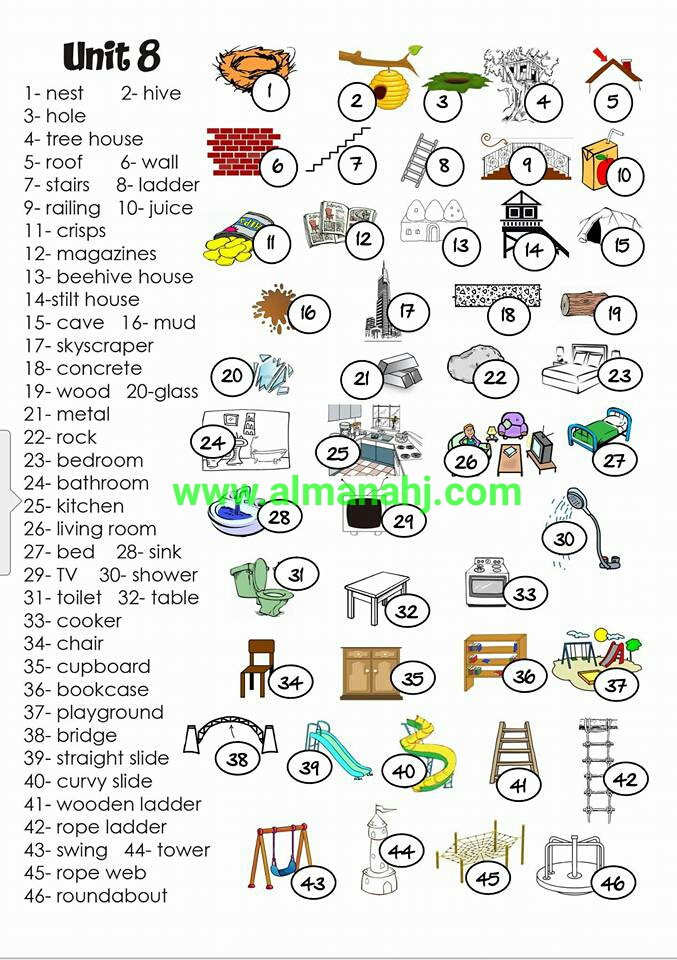 كلمات الوحدة الثامنة بالصور | ||