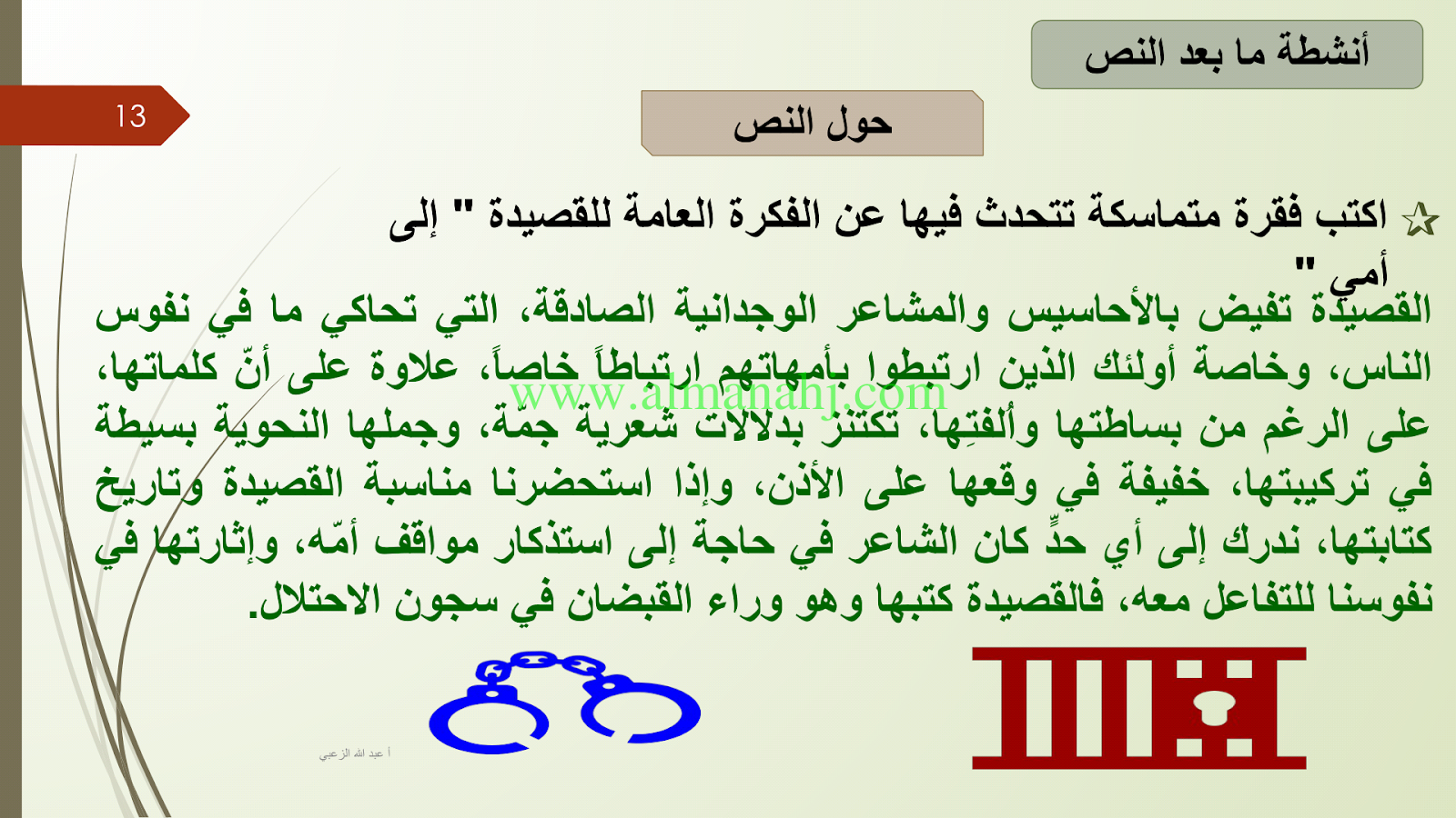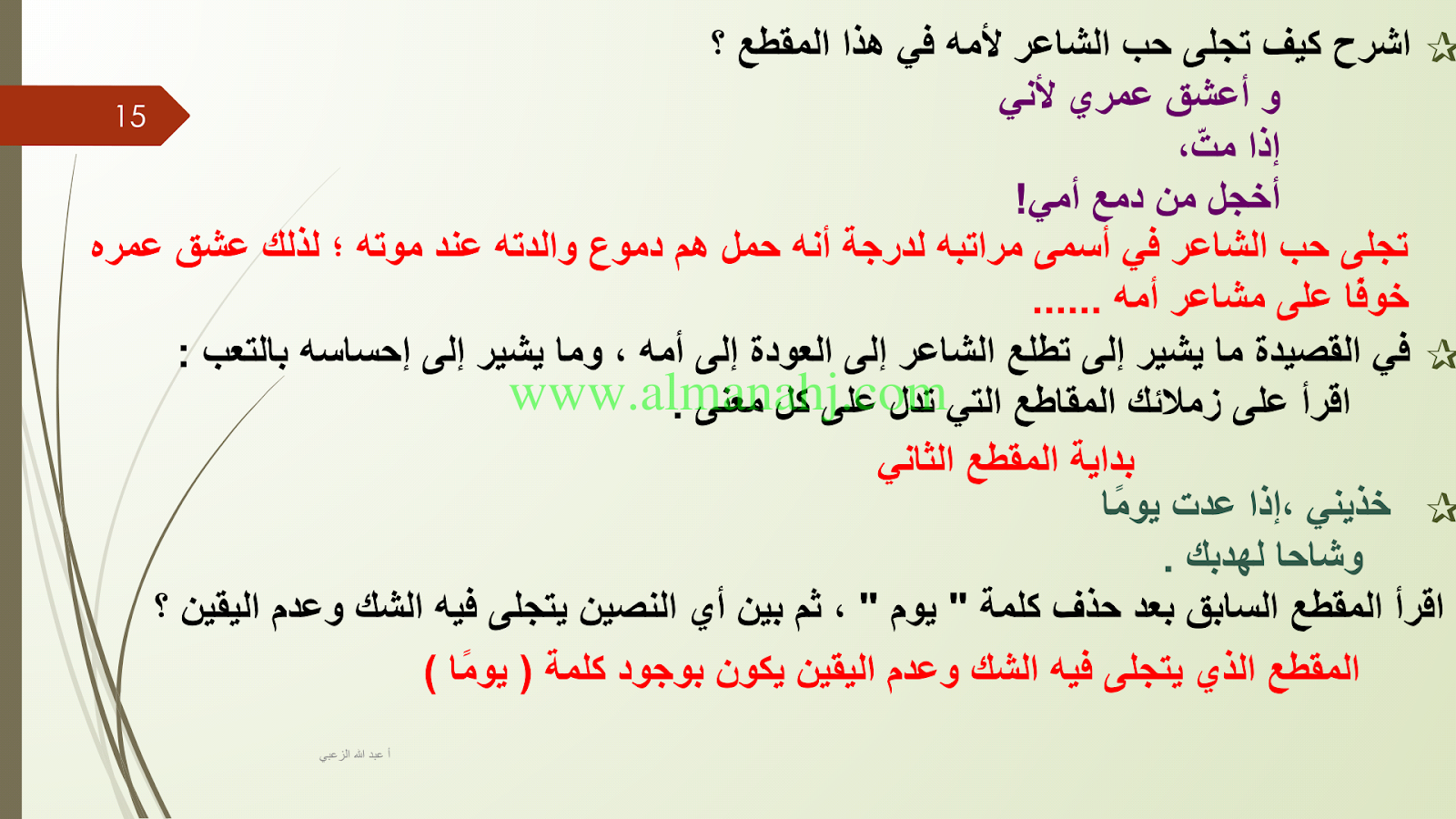 السابق: شرح وتحليل قصيدة يا ليل دعني | الملف الحالي: 4266 | التالي: أسئلة مراجعة نهائية المسار المتقدم | |
