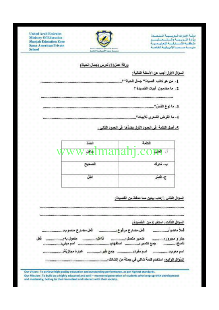 رابط تحميل وعرض ( اوراق عمل درس جمال الحياة وعددها 11ورقة ) | |||