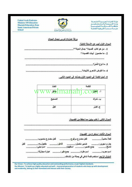 أنت هنا: موقع المناهج ⇦ المناهج الإماراتية ⇦ الصف السادس ⇦ لغة عربية ⇦ الفصل الثالث ⇦ أوراق عمل |