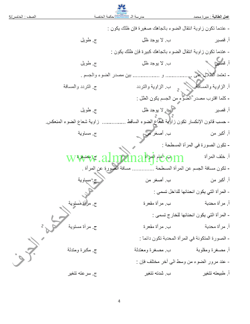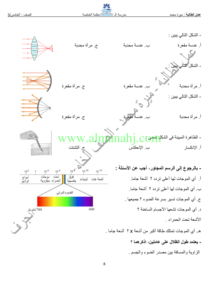 | تلخيص الوحدة13 الدرس3 الضوء | |||