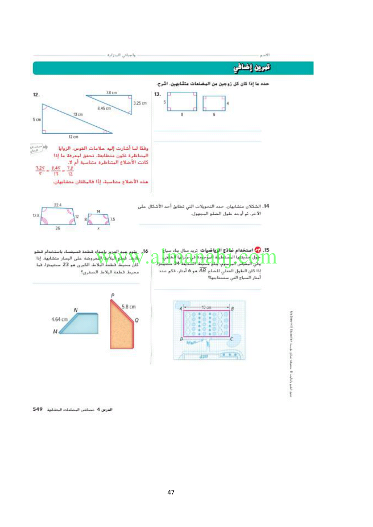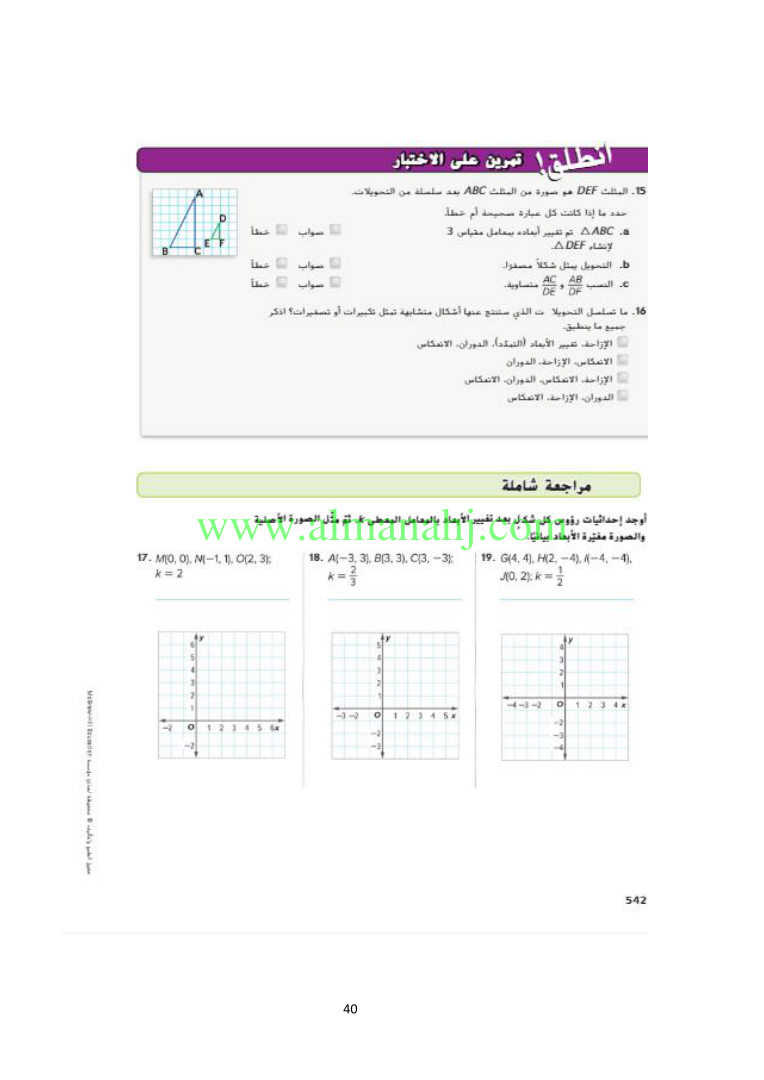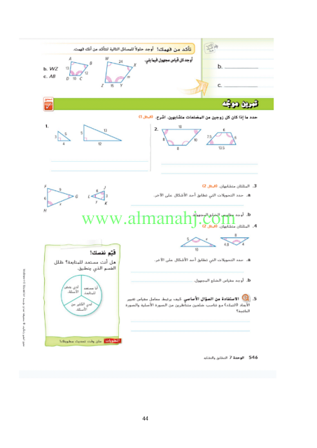 رابط تحميل وعرض ( الوحدة السابعة التطابق والتشابه ) | |||