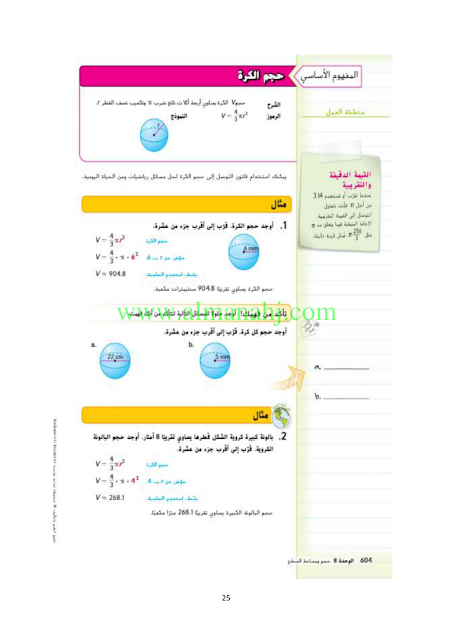 | رابط تحميل وعرض ( الوحدة الثامنة الحجم ومساحة السطح ) | |||