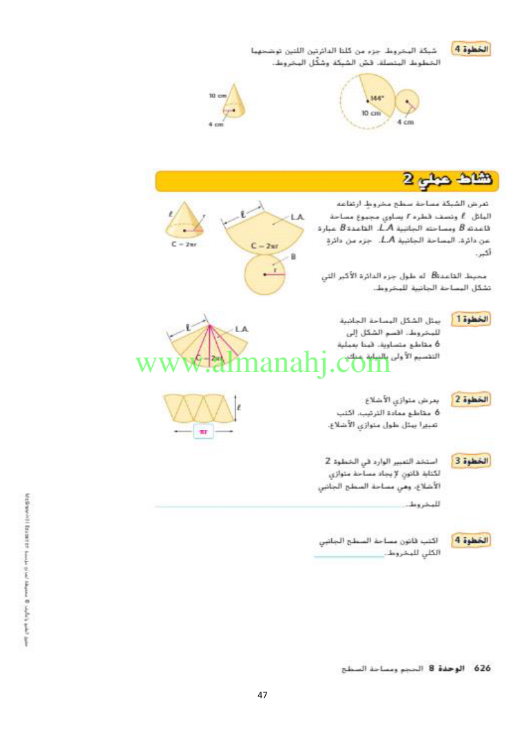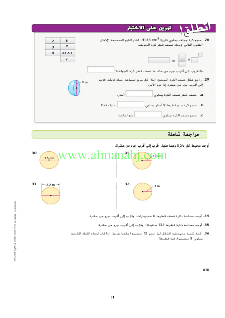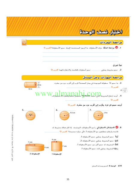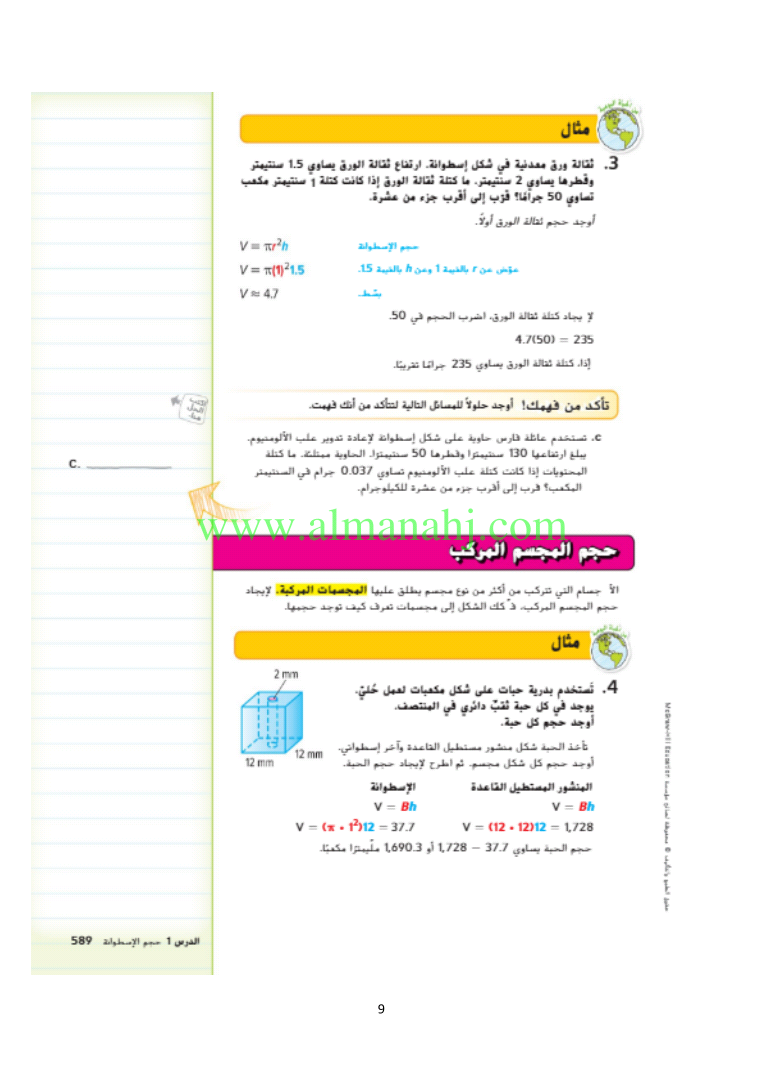 | الوحدة الثامنة الحجم ومساحة السطح | |||