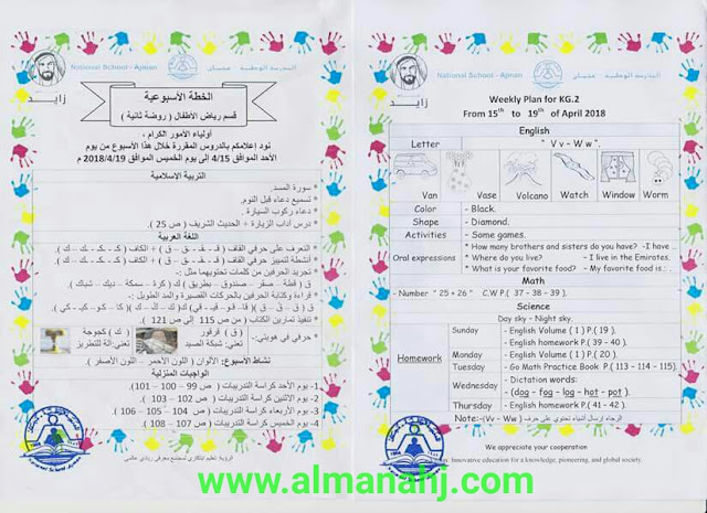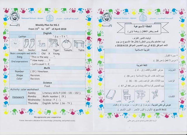 تفاصيل الخبر: الخطة الأسبوعية / قسم رياض الأطفال من الأحد 15/4/2018 إلى الخميس 19/4/2018 | ||