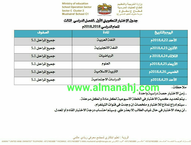 تفاصيل الخبر: جدول الاختبار التكويني الاول لجميع المراحل | ||