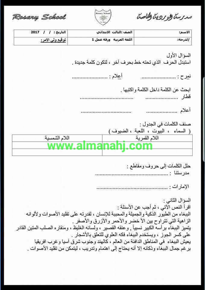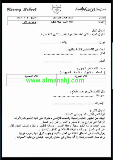 معلومات الملف: الصف الثالث, الفصل الثالث, لغة عربية, 2017-2018, أوراق عمل من مدرسة الوردية | ||