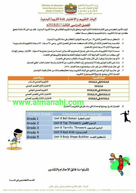 اليات التقييم والاختبار لمادة التربية البدنية الفصل الثالث | ||