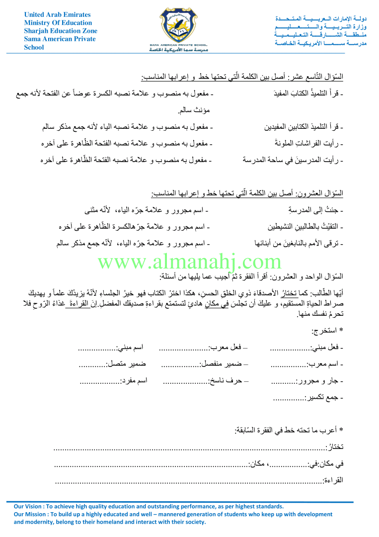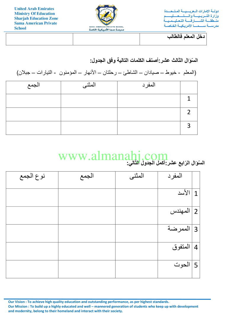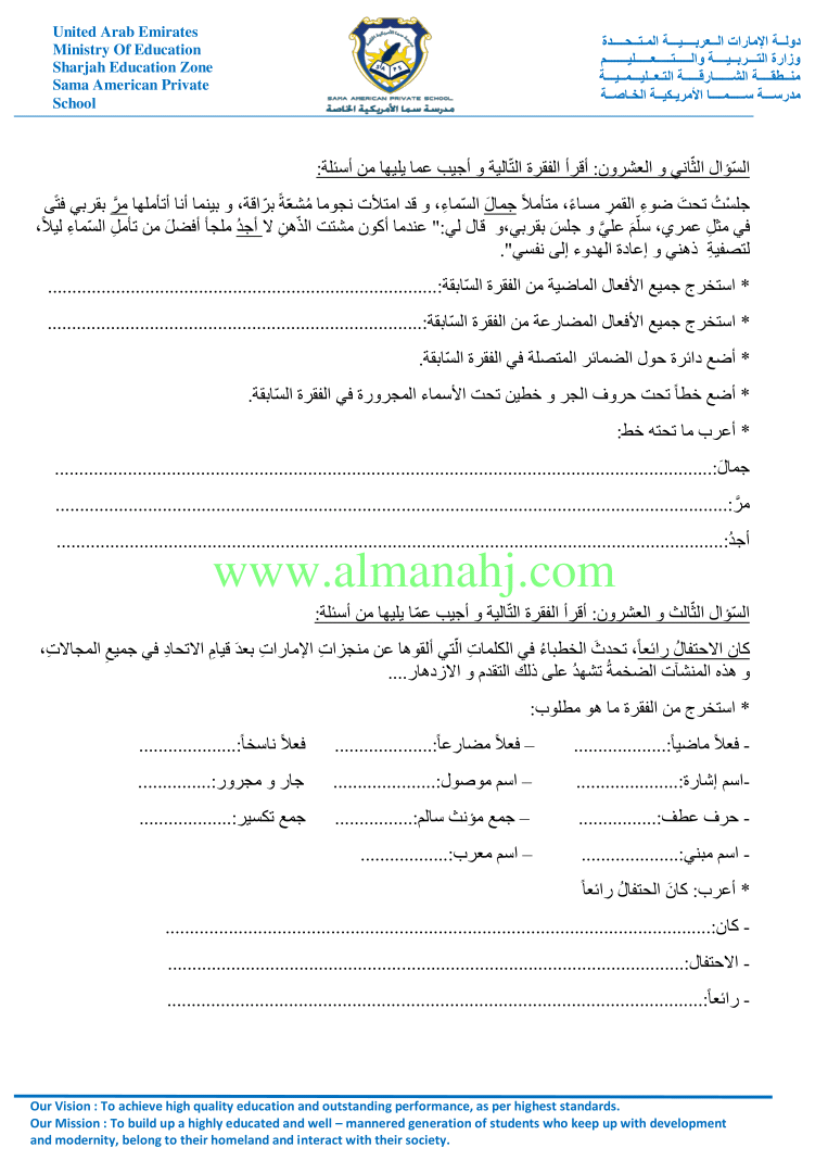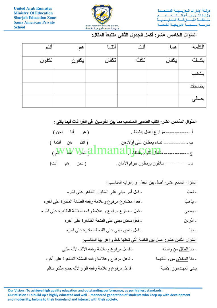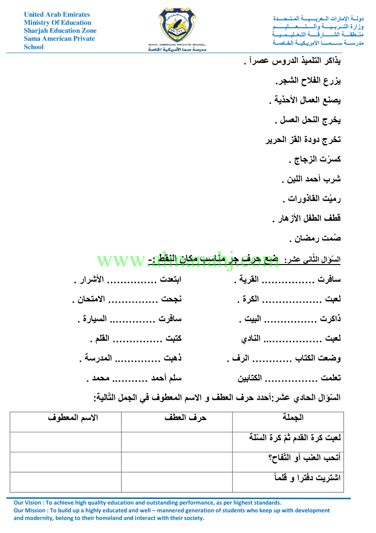 أنت هنا: موقع المناهج ⇦ المناهج الإماراتية ⇦ الصف السابع ⇦ لغة عربية ⇦ الفصل الثالث ⇦ أوراق عمل |