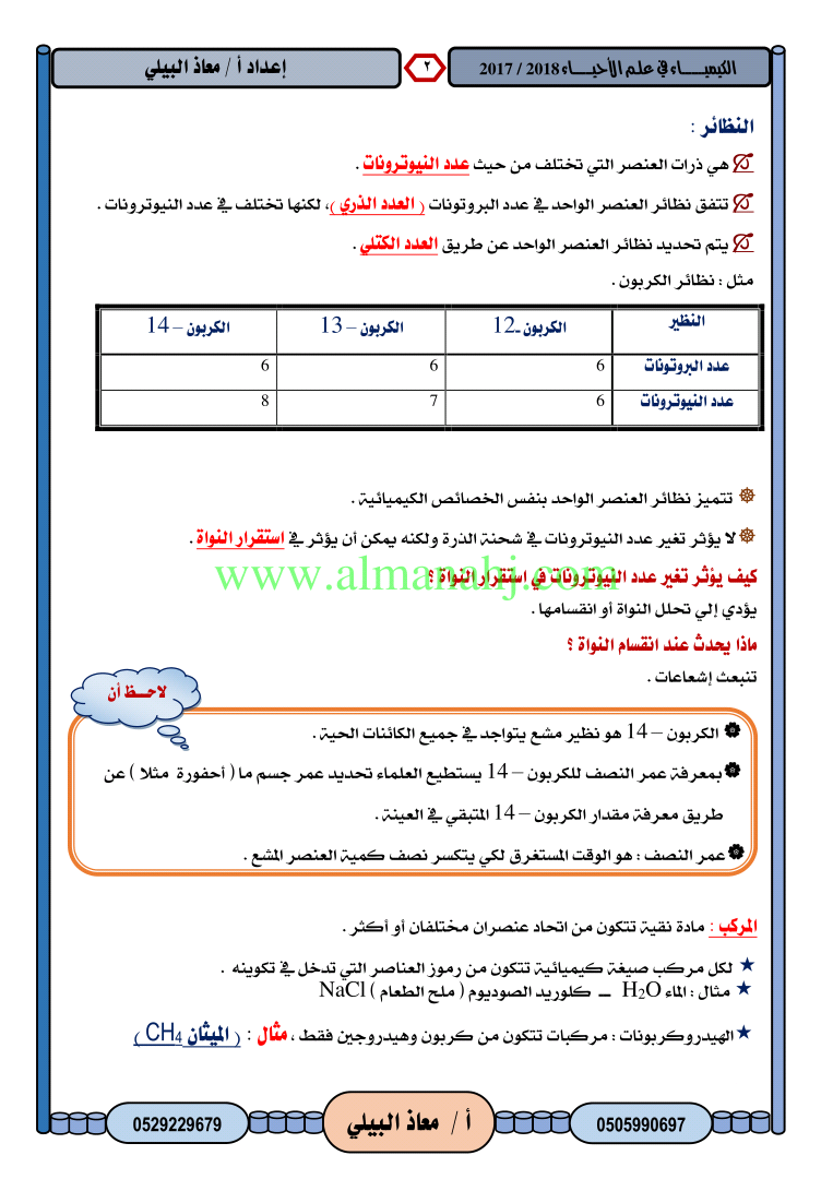 معلومات الملف: الصف الثاني عشر المتقدم, الفصل الثالث, كيمياء, 2017-2018, الذرات والعناصر والمركبات | |||