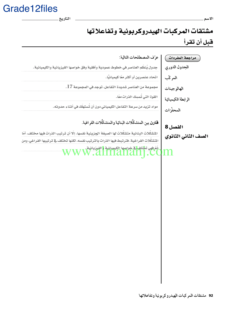 معلومات الملف: الصف الثاني عشر المتقدم, الفصل الثالث, كيمياء, 2017-2018, اوراق عمل | |||