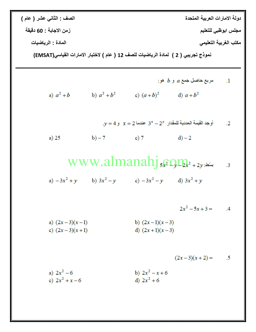أنت هنا: موقع المناهج ⇦ المناهج الإماراتية ⇦ الصف الثاني عشر المتقدم ⇦ رياضيات ⇦ الفصل الثالث ⇦ الامتحان النهائي |
