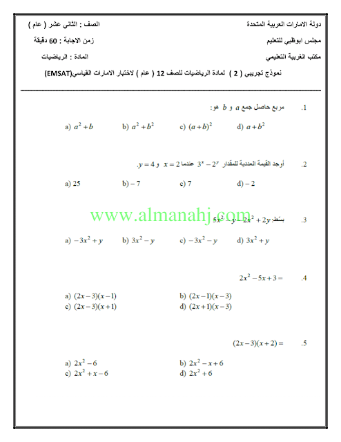 معلومات الملف: الصف الثاني عشر المتقدم, الفصل الثالث, رياضيات, 2017-2018,نموذجتجريبي2 | |||