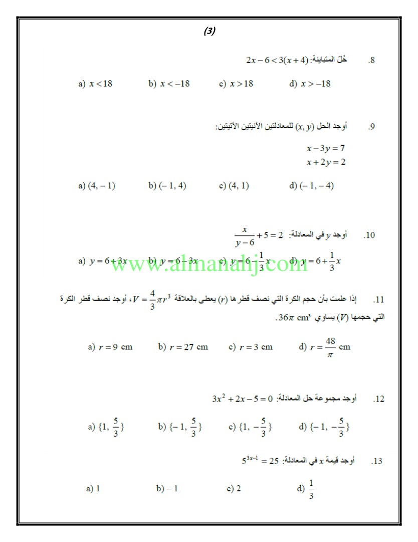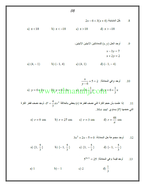 جميع الاختبارات التشخيصية المتوفرة في جميع المواد ولجميع الصفوف | |
