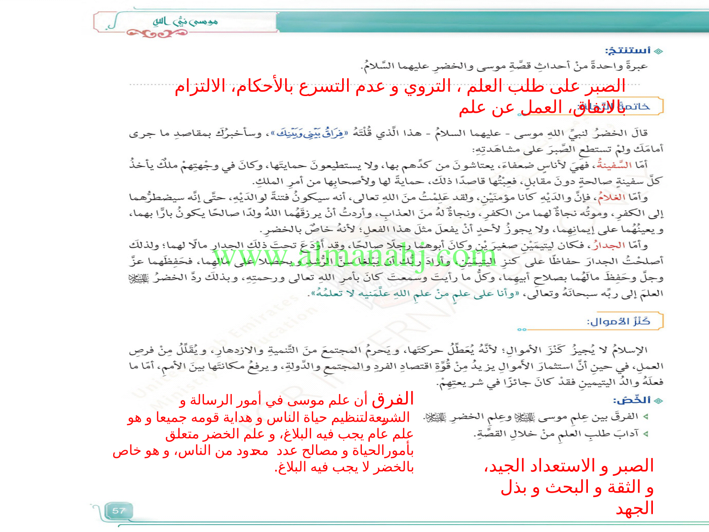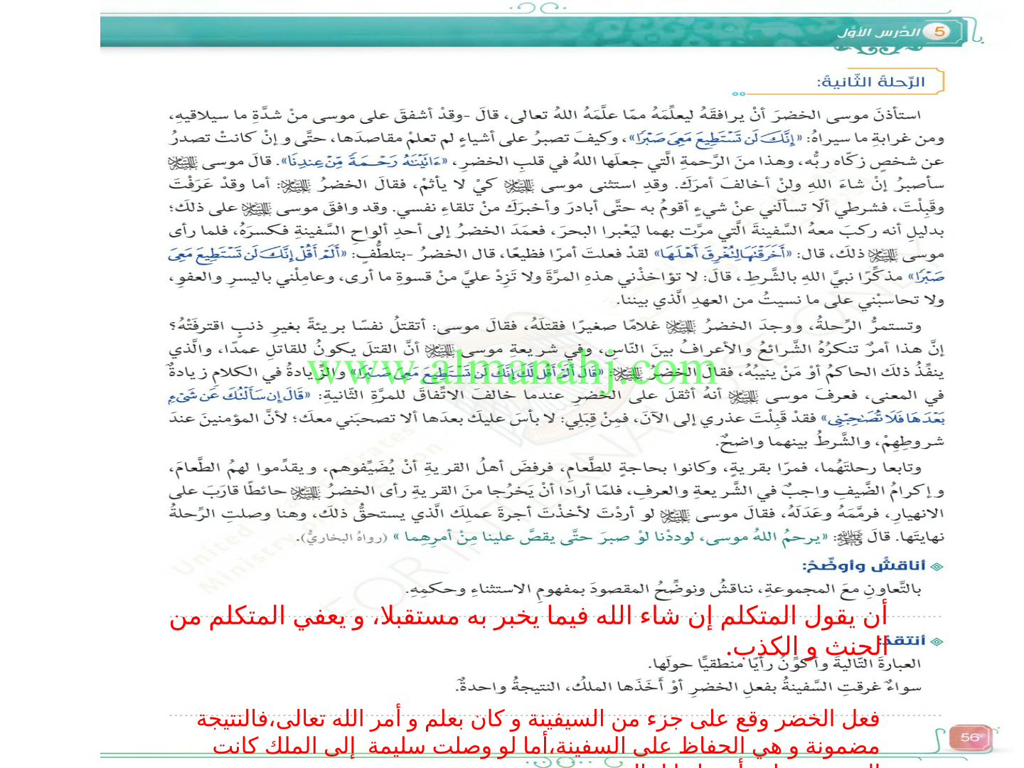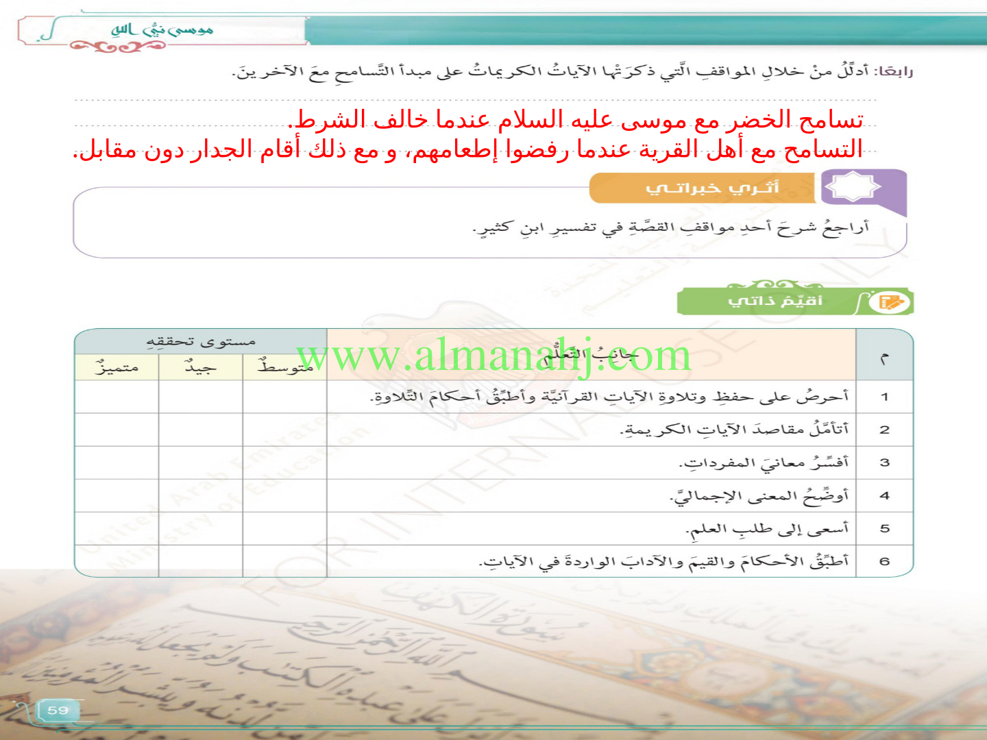 | الملاحظات المثبتة في المناهج الإماراتية | |