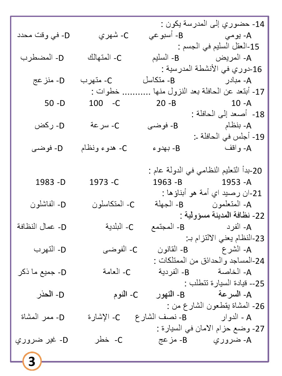 | جميع الاختبارات التشخيصية المتوفرة في جميع المواد ولجميع الصفوف | |