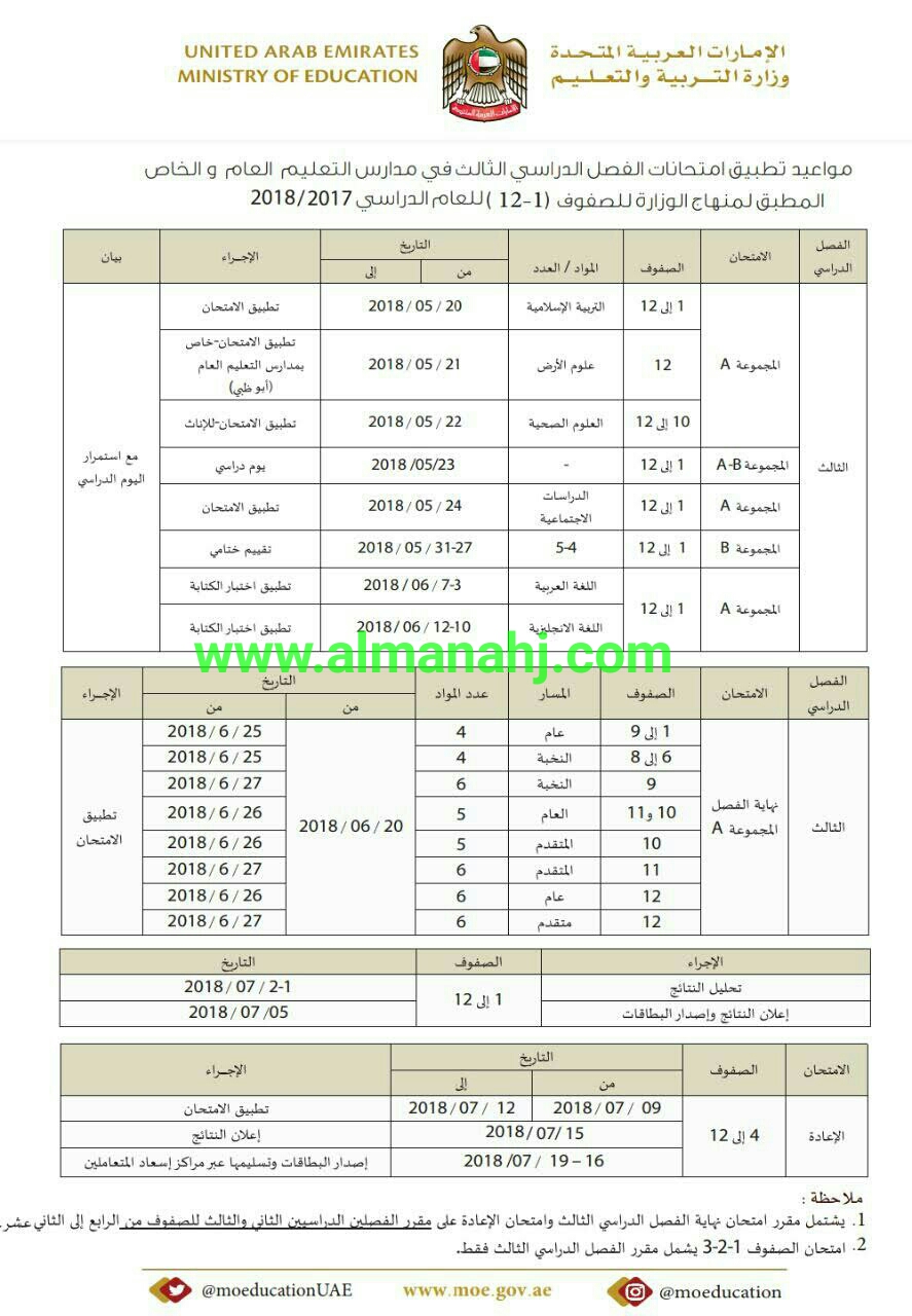 مواعيد تطبيق امتحانات الفصل الثالث تبدأ بتاريخ 20-5-2018 وتنتهي بتاريخ 25-6-2018 مع العلم بأن موعد امتحانات الاعادة هو 9-7-2018 وتنتهي بتاريخ 12-7-2018