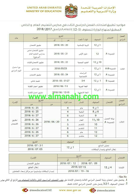 الملاحظات المثبتة في المناهج الإماراتية | |