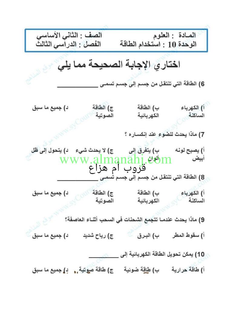 معلومات الملف: الصف الثاني, الفصل الثالث, علوم, 2017-2018, الوحدة10 استخدام الطاقة | |||